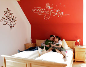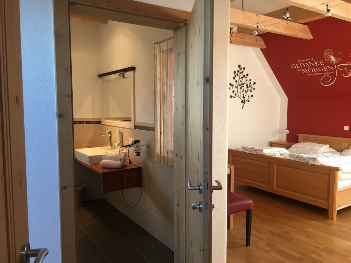 In diesem geräumigen Doppelbettzimmer unter dem liebevoll ausgebauten Dach mit jeweils einer Galerie, einem Balkon, einem HD-TV, WLAN, einem Badezimmer und einem WC, wird der Urlaub am Bauernhof zum Luxus. Familien aber auch Pärchen werden dieses Zimmer lieben.